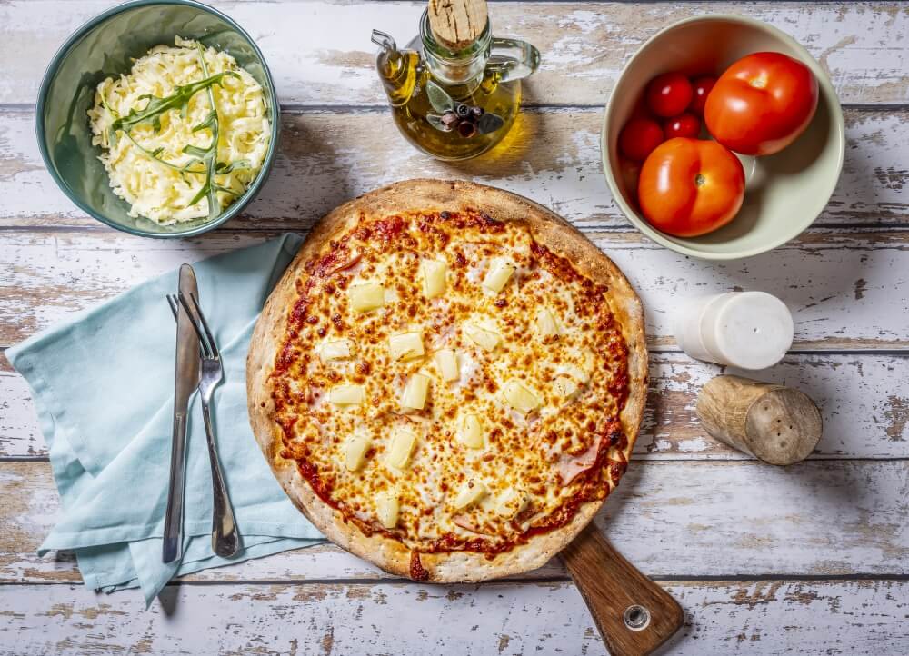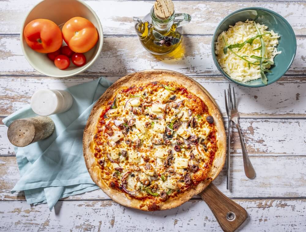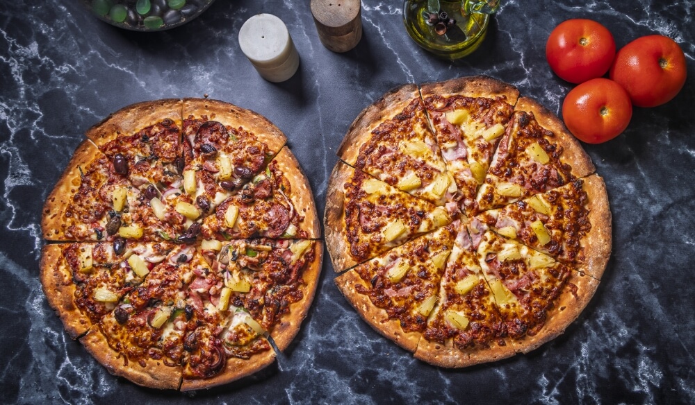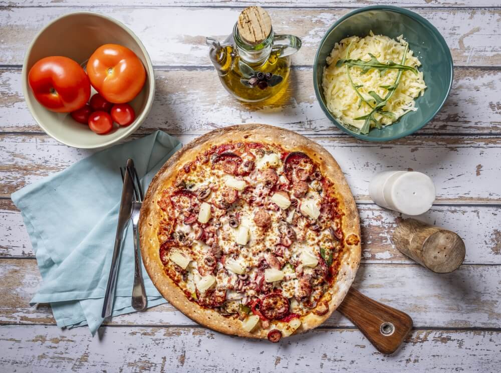 Mushroom, onion, capsicum, olives, pineapple, bacon, cabanossi, pepperoni