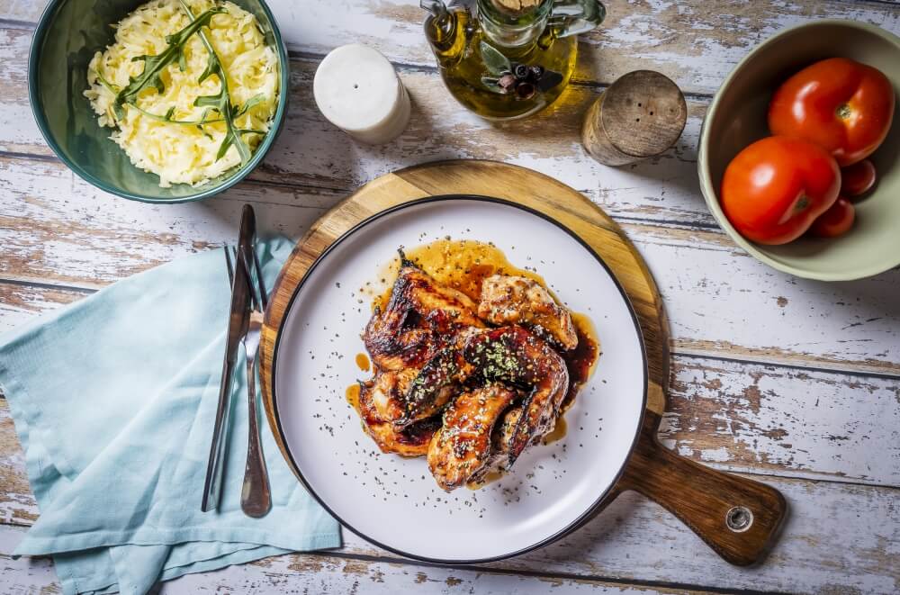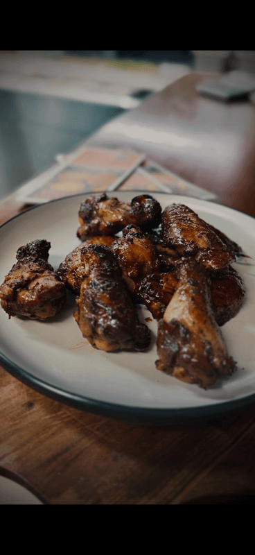 A generous serve of 8 Chicken Wings / Drumettes marinated in a delicious Pepper, Hickory BBQ sauce with a hint of Garlic and glazed with a tasty hickory BBQ reduction!