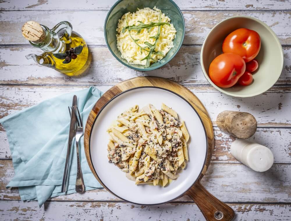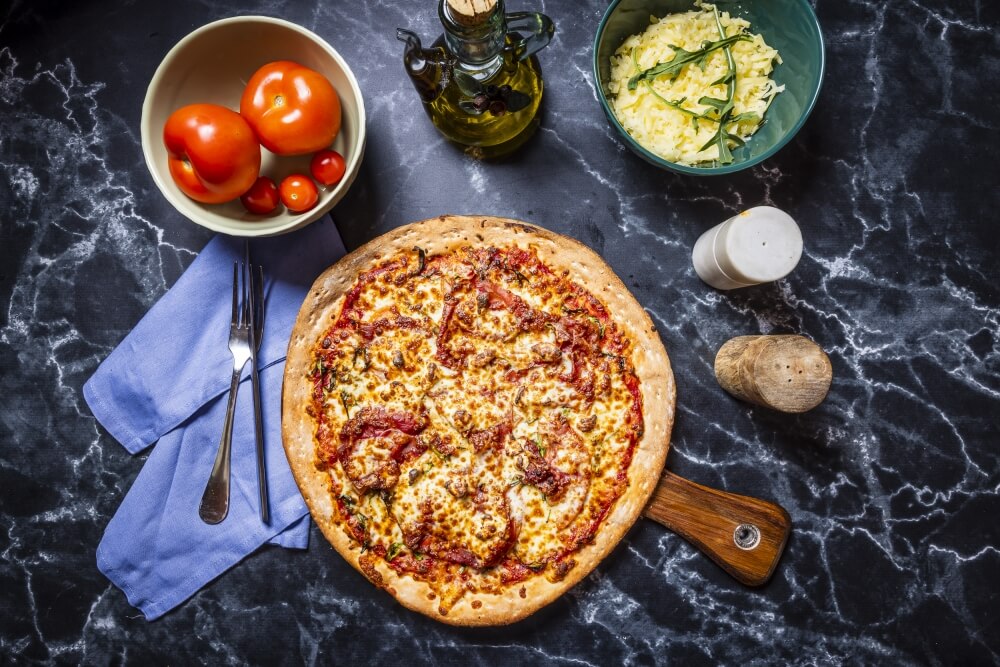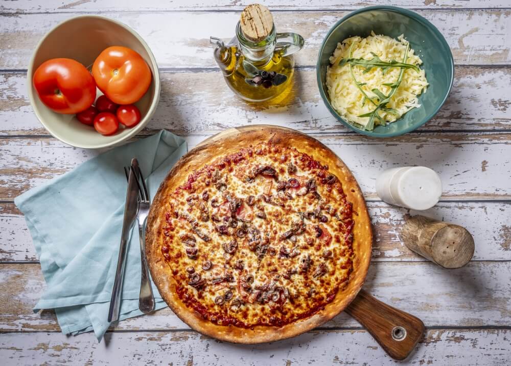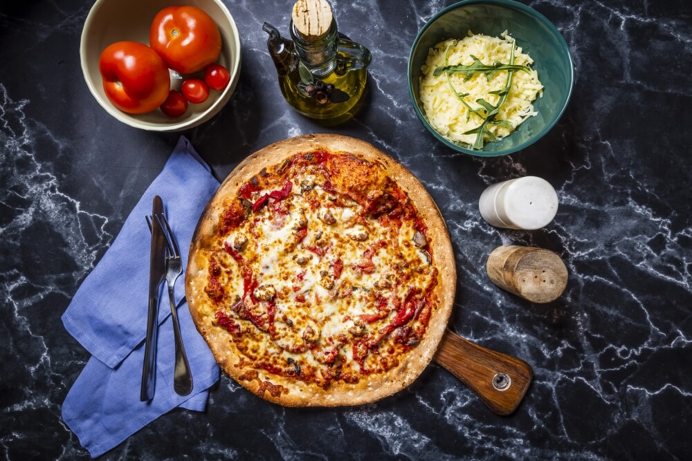 Prosciutto, char-grilled mushroom, roasted capsicum, pizzarella cream cheese and provolone cheese