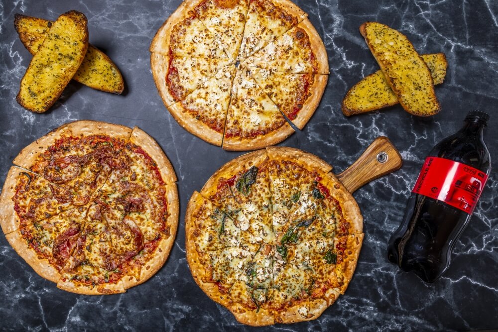 Any 3 Traditional Pizzas, 2 Garlic Breads and a 1.25L Bottle of drink