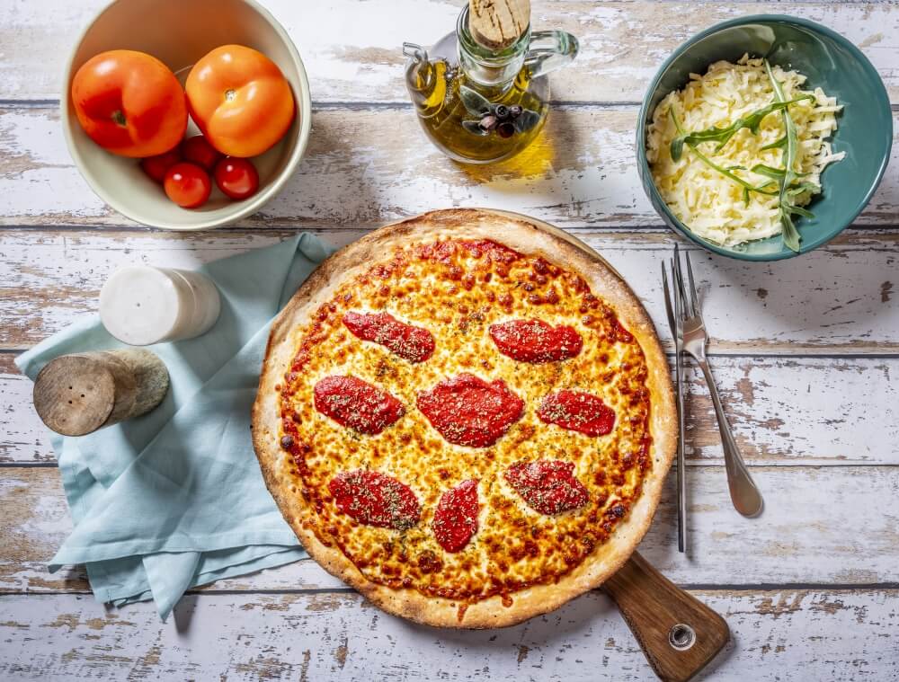 Fresh tomato, wild rocket, imported prosciutto, roasted garlic and olive oil, pizzarella cream cheese
