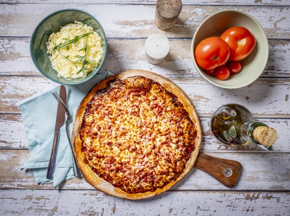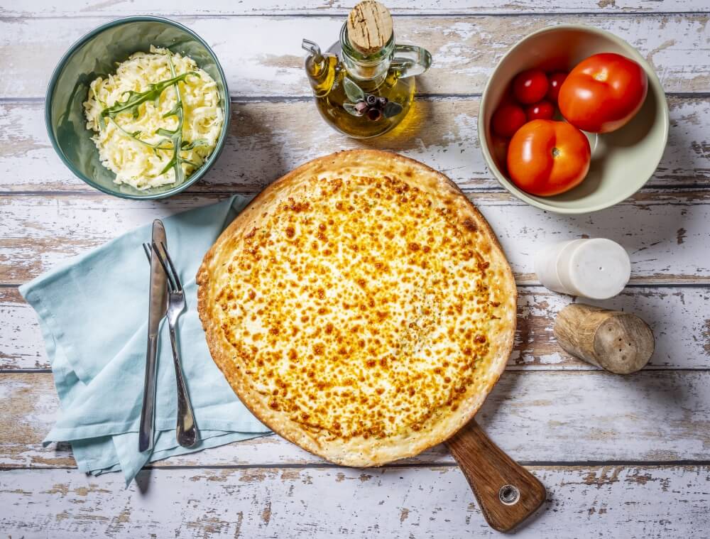 Tomato or BBQ sauce, cream cheese, feta cheese, provolone cheese, Italian tasty cheese