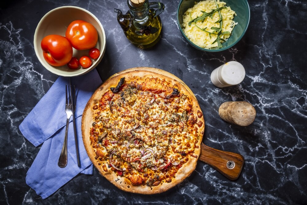 Sundried tomato, mushrooms, roasted capsicum, spanish onion, eggplant, garlic and a sprinkle of oregano